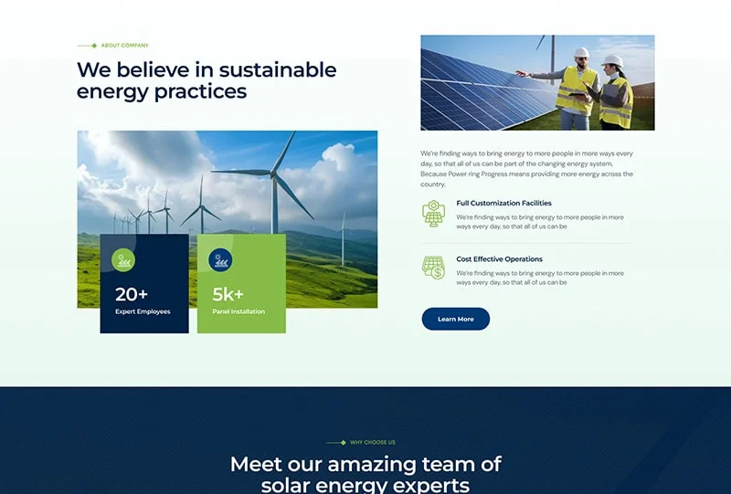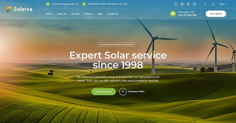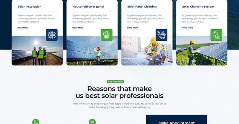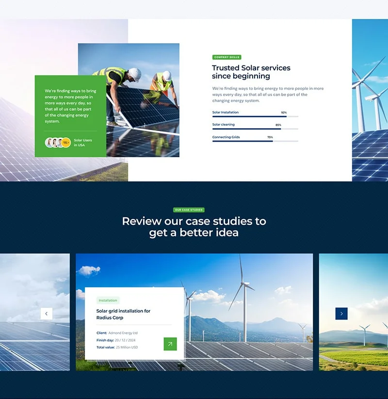 We are Solarva. It is designed as a modern & functional website for Solar Panel & Renewable Energy businesses.